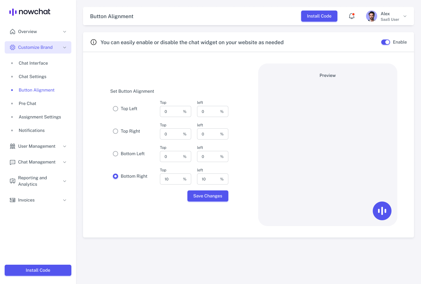 Your selected position will instantly reflect on your live chat widget.