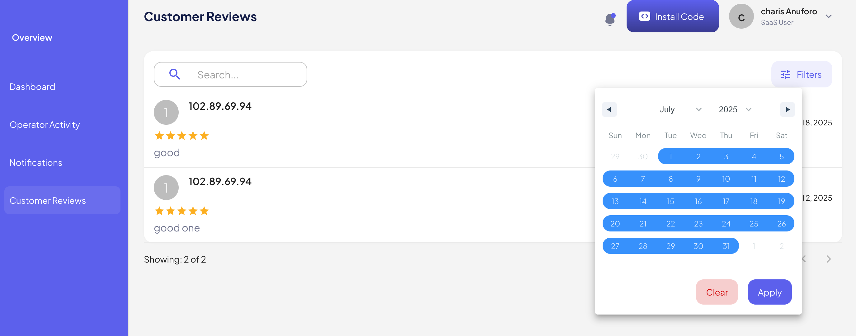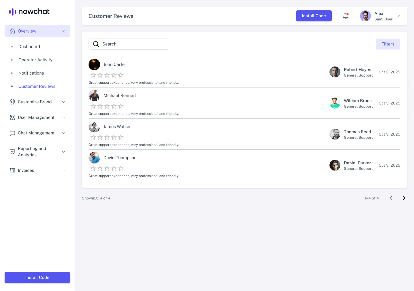 Customer reviews help you understand how well your operators are handling conversations and where improvements may be needed. Reviews are submitted at the end of each chat by the customer.