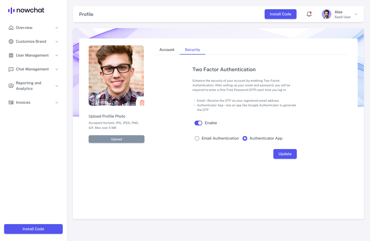 Two-Factor Authentication (2FA) adds an extra layer of security to your NowChat account by requiring a second verification step during login.