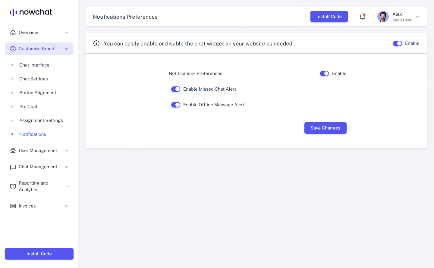 NowChat allows you to manage how and when your team receives important alerts — such as missed chats or offline messages — so nothing falls through the cracks.