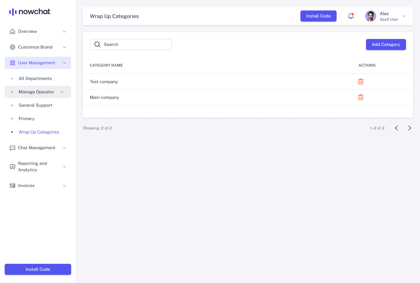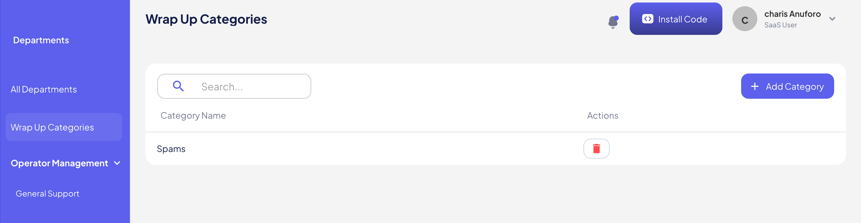 Operators are prompted to select a wrap-up category at the end of each chat session.